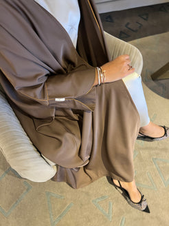Finely textured abaya with elegant Bronze piping and draping are a stylish choice for modest fashion. Add this finest...