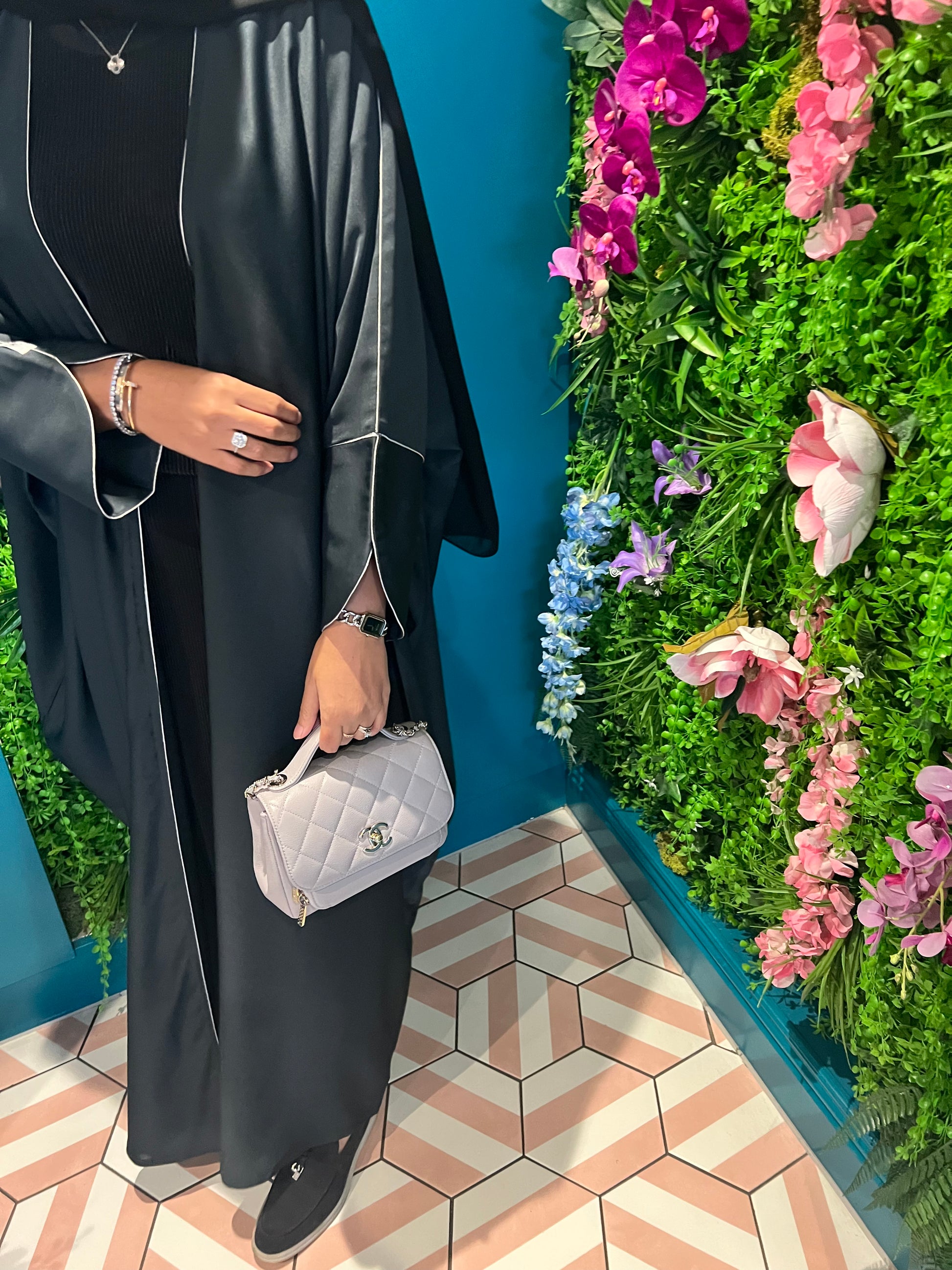 Finely textured abaya with elegant Silver piping and draping are a stylish choice for modest fashion. Add this finest...