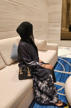 Introducing the epitome of elegance from the Dark Lilly Collection – the Luxury Black Printed Linen Open Abaya. Craft...