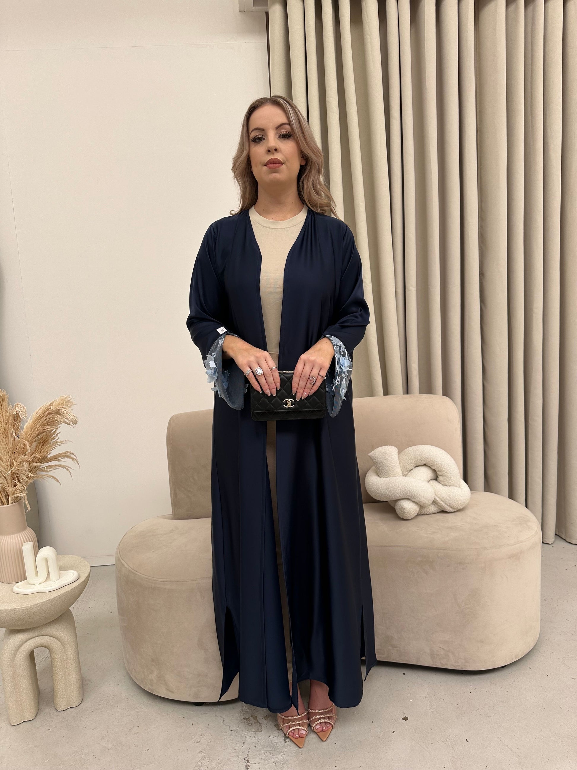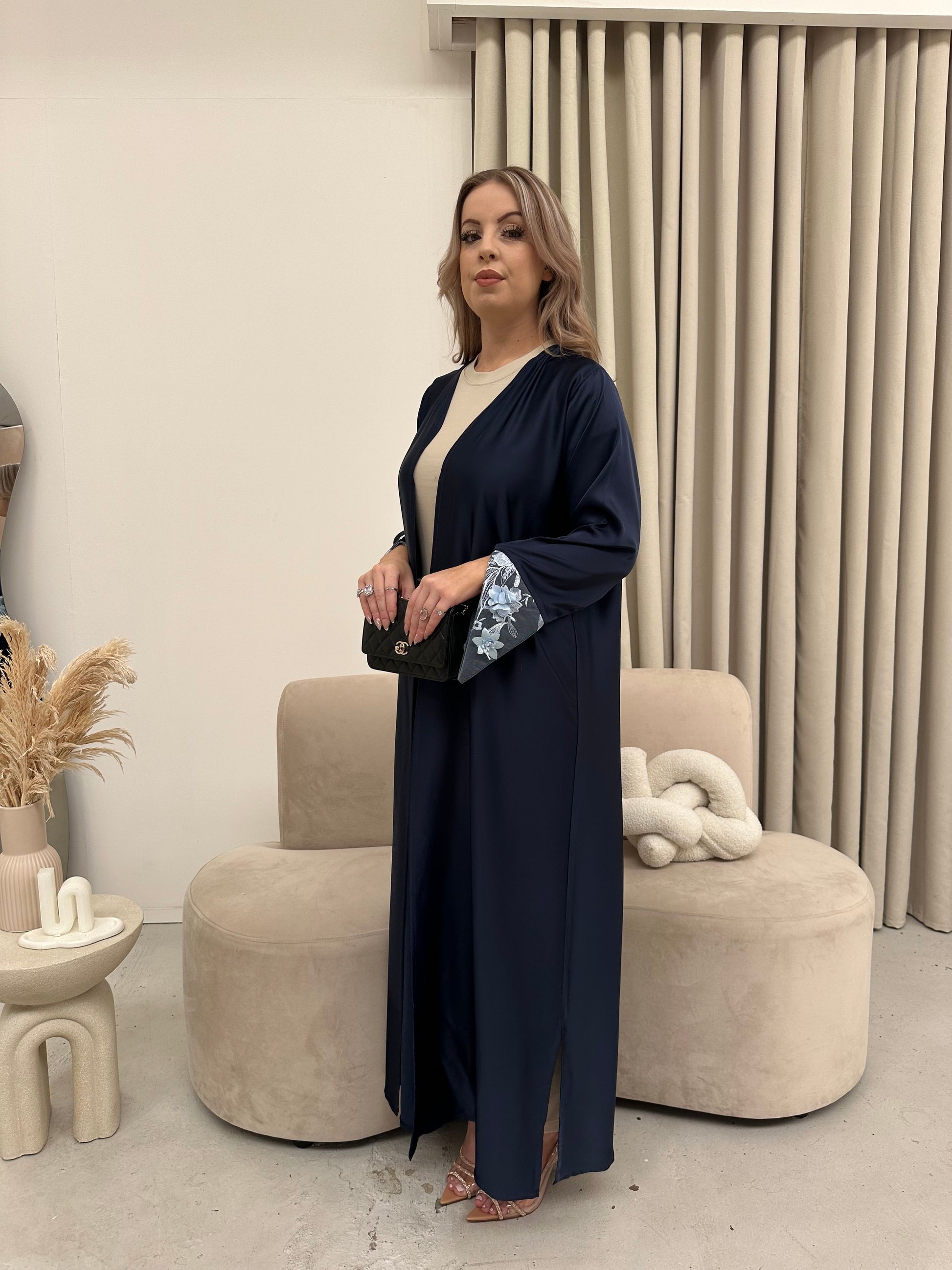 Drape yourself in the effortless sophistication of our straight cut open abaya, designed to infuse vibrant energy int...