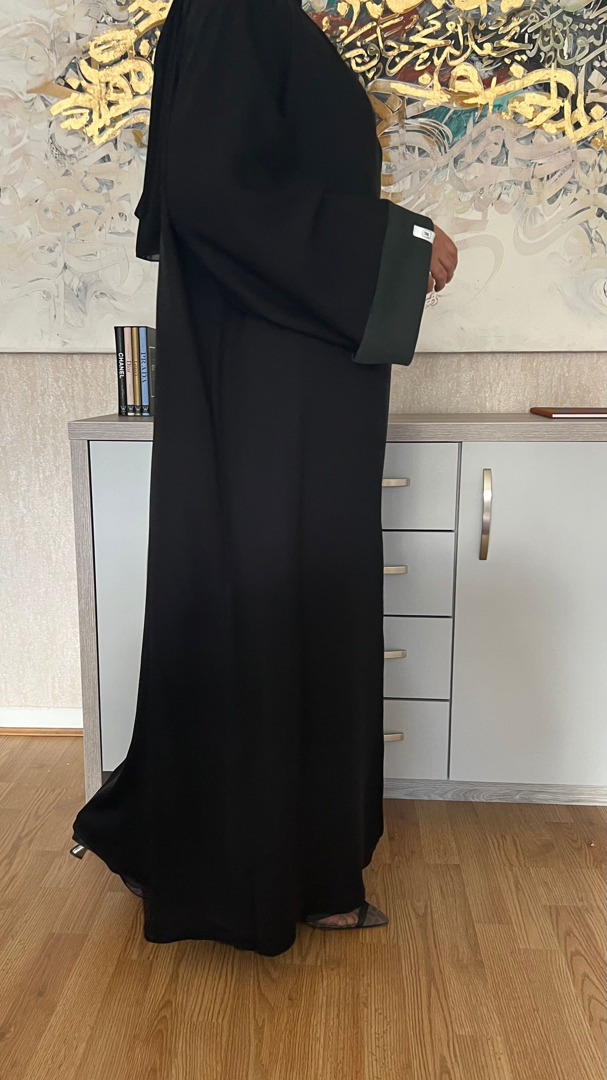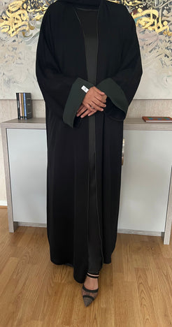 A beautifully cut abaya with contrast piping and sleeves. Designed with practicality in mind by including 2 side pock...