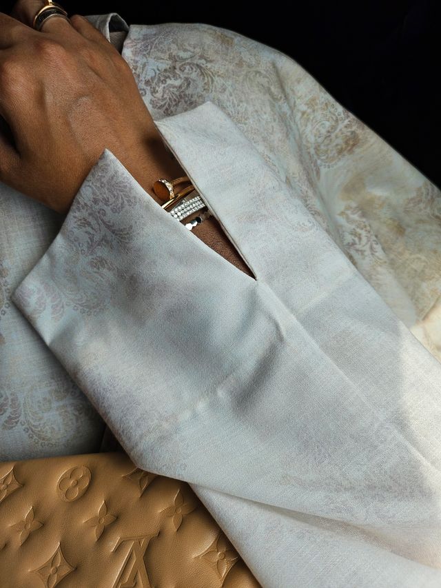 Handcrafted with precision, our opulent garments are crafted from sumptuously textured fabric that glimmers with ethereal radiance.